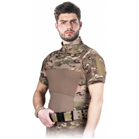 Ekastyczna koszulka z krótkim rękawem Tactical Guard. - 94% bawełna, 6% spandex - gramatura 180 g/m2 - zapinana na suwak - kołnierz w formie stójki - rękawy zakończone na rzep - na rękawach dwie kieszenie zapinane na suwak - na ramionach materiał przeznaczony na różnego typu emblematy i odznaczenia - dzięki elastyczności lepiej dopasowuje się do sylwetki, jednocześnie nie krępując ruchów - dedykowana dla miłośników militariów, motocyklistów, motorowerzystów, podróżników, fanów paintballu - idealna dla firm ochroniarskich, leśników i rybaków - sprawdzi się podczas survivalu