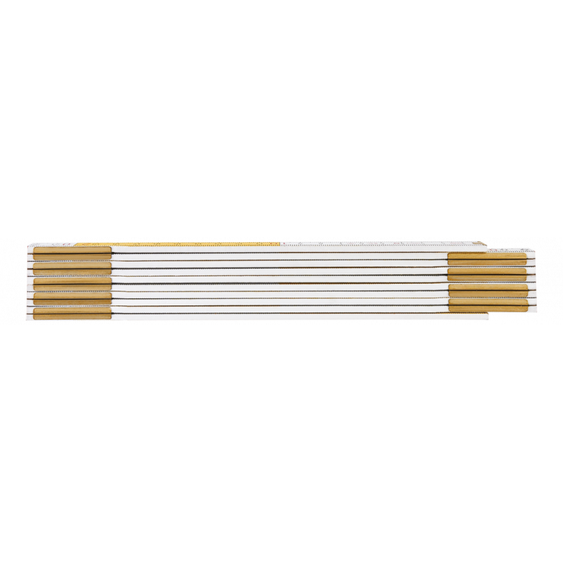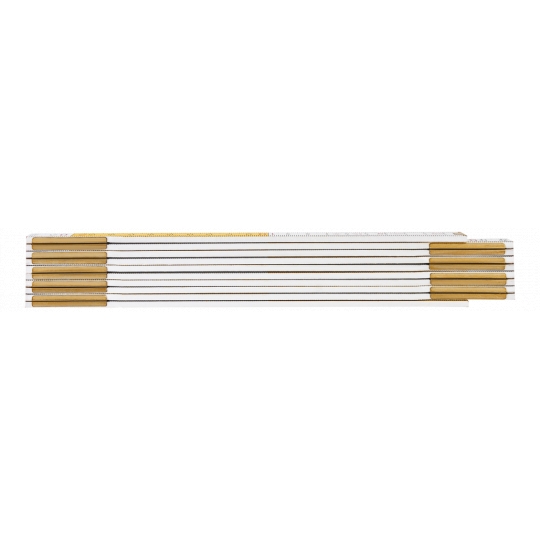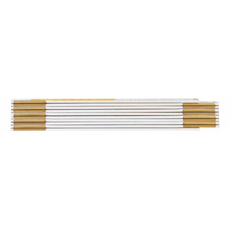 Miara składana drewniana 2 m, biało-żółta, III klasa, obustronna podziałka, drewno bukowe, podwójne lakierowanie, grubość członu 2.85 mm, certyfikat MID