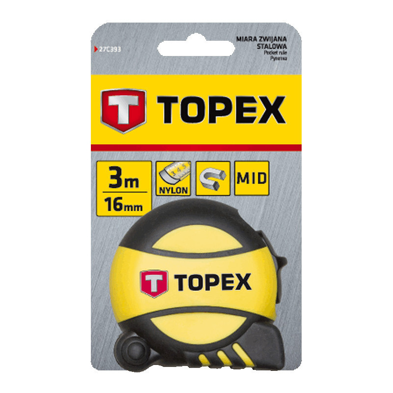 Miara zwijana stalowa 3 m x 16 mm, magnetyczna końcówka, nylonowa powłoka chroniąca podziałkę przed starciem
