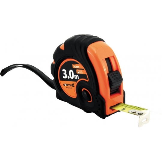 Miara zwijana. Obudowa wykonana z tworzywa z gumowymi wykończeniami. Grubość taśmy: 0.135 mm Szerokość: 16 mm