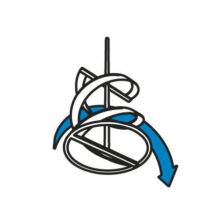 Część robocza mieszadła, wtłaczające, średnica 120 mm, długość 230 mm, gwint wewnętrzny M14.