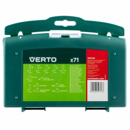 Akcesoria do miniszlifierki, kamienie szlifierskie x 5 szt., taśmy szlifierskie 12.7 mm x 8 szt., bęben szlifierski x 1 szt., trzpień 3.2 mm, tarcze tnące i szlifierskie x 56 szt., zestaw 71 szt.