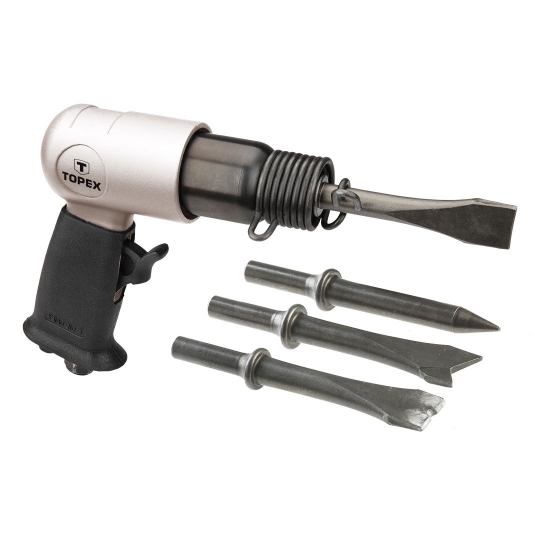Młotek udarowy pneumatyczny 4 500 udar-1, ciśnienie robocze 6 - 8 bar, pobór 140 l\min., komplet dłut, waga 1.7 kg, CE