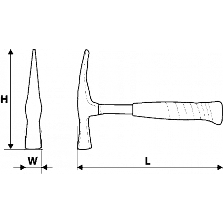 Młotek murarski typ berliński, 600 g, wyciągacz do gwoździ, (LxHxW) 280 x 200 x 26 mm, metalowy trzonek - rurka profilowana hartowana, gumowany uchwyt, DIN5108