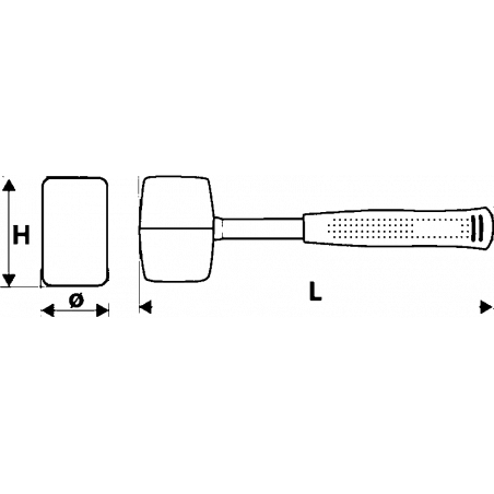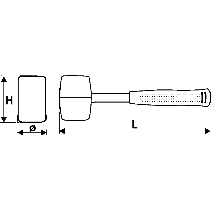 Młotek gumowy O 60 mm, 450 g, metalowy trzonek - rurka profilowana hartowana, gumowany uchwyt, (LxH) 325 x 96 mm