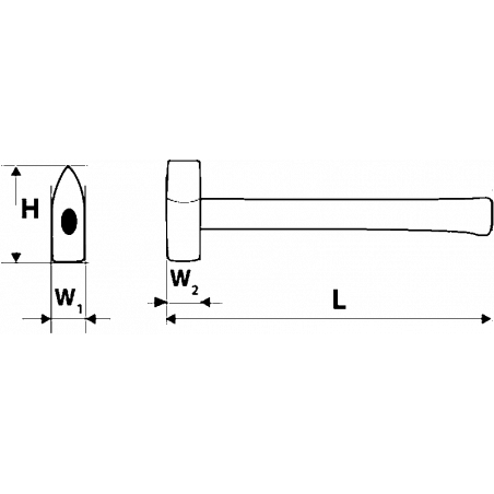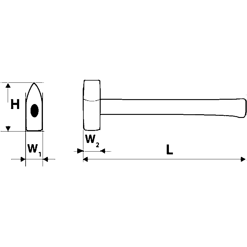 Młotek kamieniarski 4 kg, dwuobuchowy, rozłupak, trzonek jesionowy, przekrój obucha (W1xW2) 64 x 63 mm, (LxH) 700 x 150 mm, DIN1042