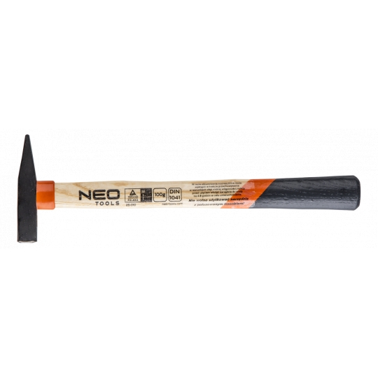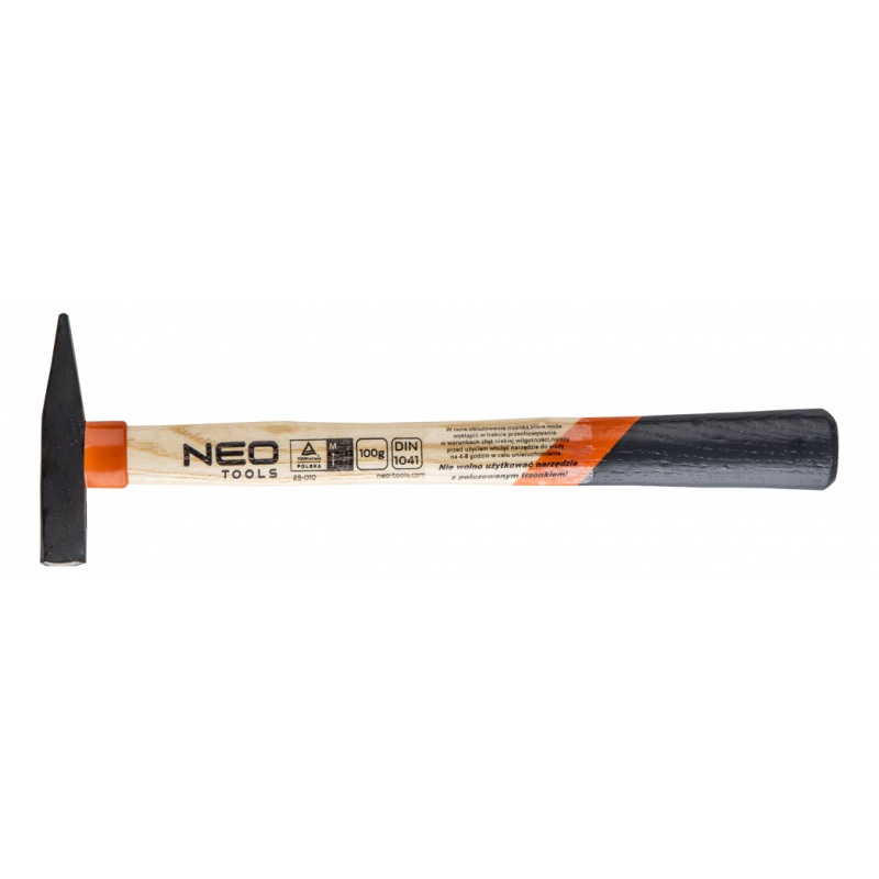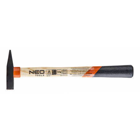 Młotek ślusarski 100 g, trzonek jesionowy, obuch odkuwany, hartowany, plastikowa osłona trzonka, mocowanie klinem stalowym, (HxLxW) 258 x 82 x 17 mm, DIN1041