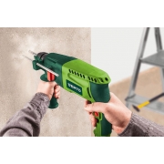 Młotowiertarka SDS+ 550W, obroty 0-1000 min⁻¹, udar 0-4600 min⁻¹, energia udaru 1.5 J, 2-funkcyjna, średnica wiercenia w betonie/stali/drewnie 22/13/30mm, wymiary urządzenia (LxH) 340 x 210 mm, masa 2.3 kg, akcesoria: 3 wiertła do betonu, uchwyt wiertarski, adapter do uchwytu, walizka