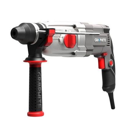 Młotowiertarka SDS+ 900W, obroty 0-950 min⁻¹, udar 0-5300 min⁻¹, energia udaru 3.4 J, 4-funkcyjna, średnica wiercenia w betonie/stali/drewnie 30/13/30mm, akcesoria: wiertło do betonu, uchwyt wiertarski, adapter do uchwytu, walizka