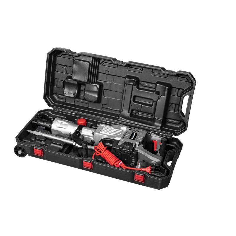 Młot wyburzeniowy uchwyt sześciokątny 30 mm, 1700W, udar 1500 min⁻¹, energia udaru 45 J, przewód zasilający 4 m, masa 14 kg, akcesoria: 1 dłuto, osłona przeciwpyłowa, zasobnik ze smarem, walizka