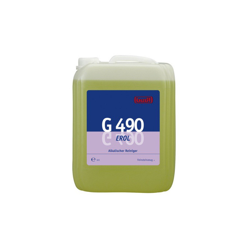 Specjalistyczny środek o zasadowym pH przeznaczony do czyszczenia powierzchni mikroporowatych i odpornych na działanie zasad. Szczególnie zalecany do gresu i płytek antypoślizgowych. Rozpuszcza zabrudzenia olejowo - tłuszczowe i brud wnikając głęboko w pory. Doskonała rozlewność, produkt niskopieniący. Wraz z kwaśnym produktem G 491 EROL cid tworzy system gwarantujący uzyskanie perfekcyjnego efektu doczyszczania. Ujęty na liście RK.