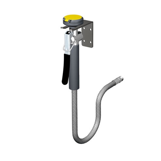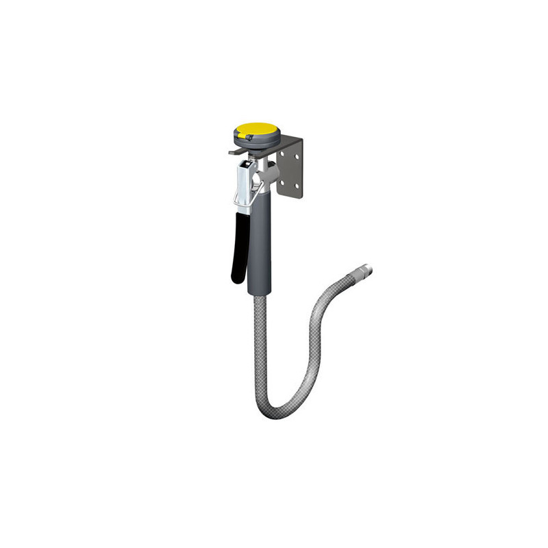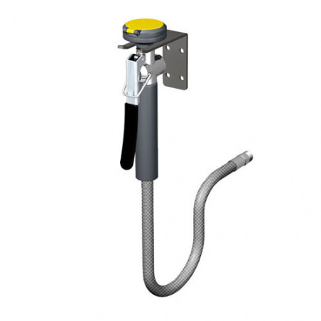 Ręczna myjka do oczu / ciała montowana na ścianę z automatyczną kontrolą ciśnienia i przepływu. Uchwyt myjki wykonany jest ze stali nierdzewnej. Długość węża myjki to 2200 mm, a szybkość przepływu możliwa: 1,5 - 6,5 bar ciśnienia.