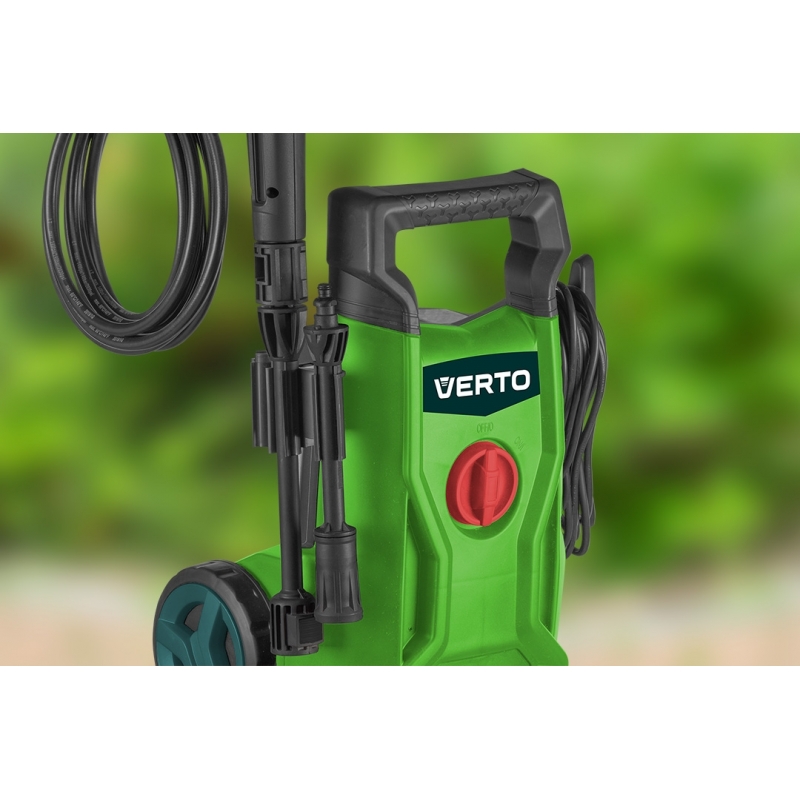 Myjka ciśnieniowa 1400 W, aluminiowa pompa, ciśnienie robocze 80 bar, maks. ciśn. 110 bar, przepływ 5.5 l/min, max. temperatura wody zasilającej 500C, masa 5.5 kg, akcesoria: rękojeść pistoletowa, lanca oraz dysza, zbiornik na detergent, wąż wysokociśnieniowy 5 m, uchwyt na wyposażenie, złacze wlotu wody z filtrem, przetyczka do czyszczenia dyszy