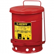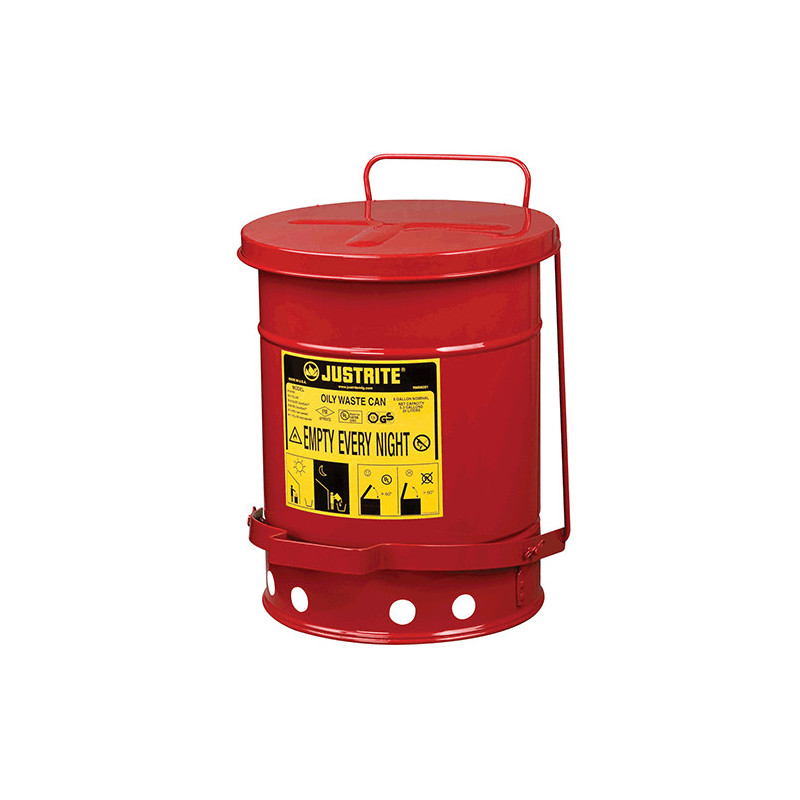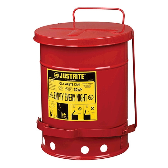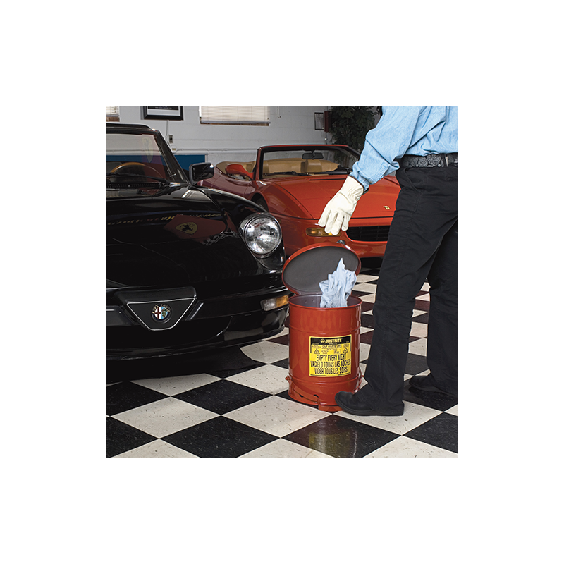Pojemnik umożliwia bezpieczne magazynowanie w miejscu pracy pozostałości nasączonych olejem, rozpuszczalnikami i zabezpiecza przed pożarem. Czyściwa nasączone płynami łatwopalnymi stanowią poważne zagrożenie, jeśli nie są właściwie przechowywane.