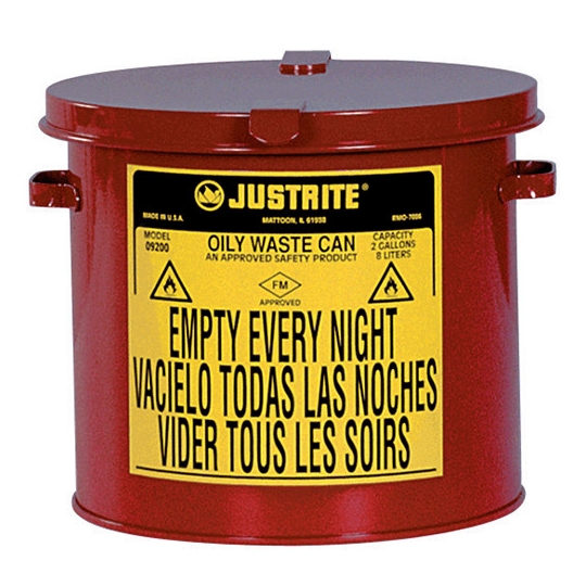 Pojemnik umożliwia bezpieczne magazynowanie w miejscu pracy pozostałości nasączonych olejem, rozpuszczalnikami i zabezpiecza przed pożarem. Czyściwa nasączone płynami łatwopalnymi stanowią poważne zagrożenie, jeśli nie są właściwie przechowywane. Specjalnej konstrukcji pokrywa otwiera się pod kątem ponad 60 stopni i po zdjęciu stopy z pedału nożnego zamyka się samoczynnie, izolując odpady od źródeł ognia i zapłonu. Konstrukcja pojemnika otwieranego na pedał zapewnia, że pojemnik zawsze będzie zamknięty. Taka konstrukcja ułatwia pracę gdyż nie ogranicza rąk. Brak dostępu tlenu uniemożliwia samozapłon zawartości pojemnika. Pojemnik wykonany został w wyraźnych kolorach w celu zaznaczenia miejsca przechowywania substancji niebezpiecznych.