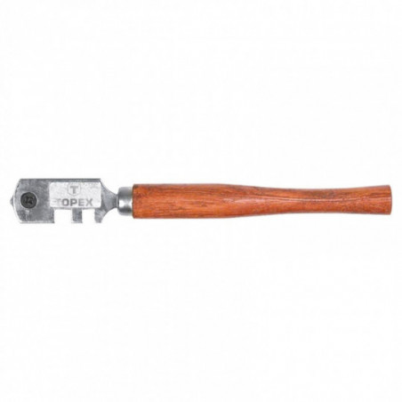 Nóż do szkła, drewniany uchwyt, obrotowa głowica z 6 ostrzami do różnych grubości szkła, wycięcia do odłamywania szkła