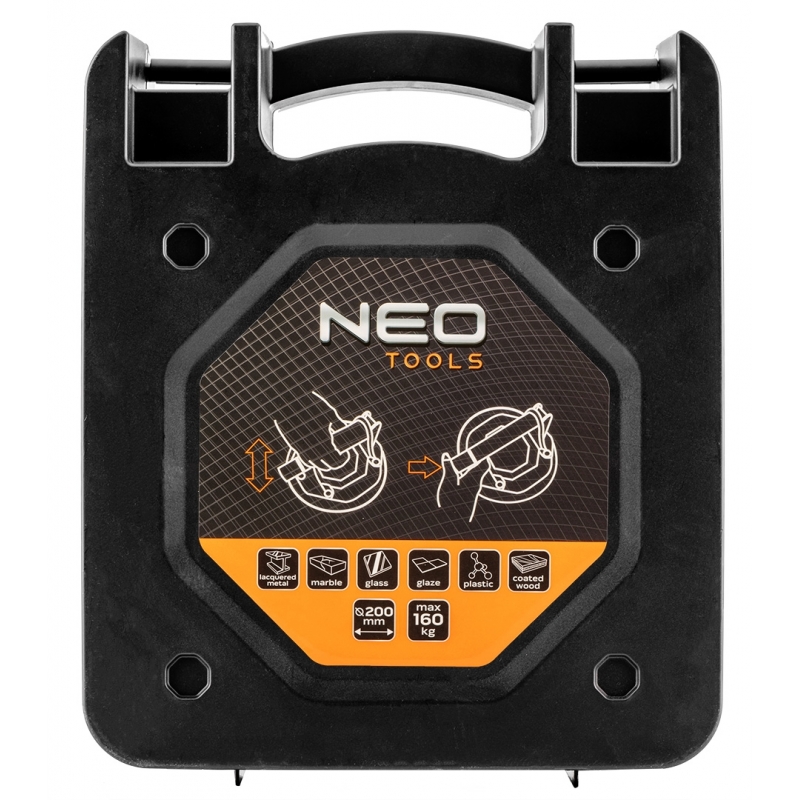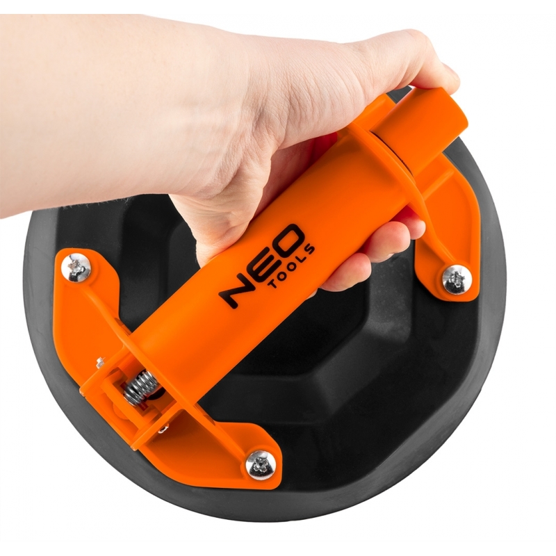 Przyssawka do szyb pojedyncza, 160 kg, wyposażona w wydajną pompkę próżniową dla mocniejszego połączenia, ręczny zawór zwalniający zapewnia bezproblemowe usuwanie przyssawki z materiału, wzmocniony uchwyt z tworzywa sztucznego, powierzchnia dostosowana zarówno do gładkich, jak i chropowatych powierzchni, a także do tych o zróżnicowanych teksturach, pakowana w walizce. Przeznaczona do bezpiecznego przenoszenia i montażu różnych elementów np. szyb, glazury, gresu, blach, płyt laminowanych i wielu innych.