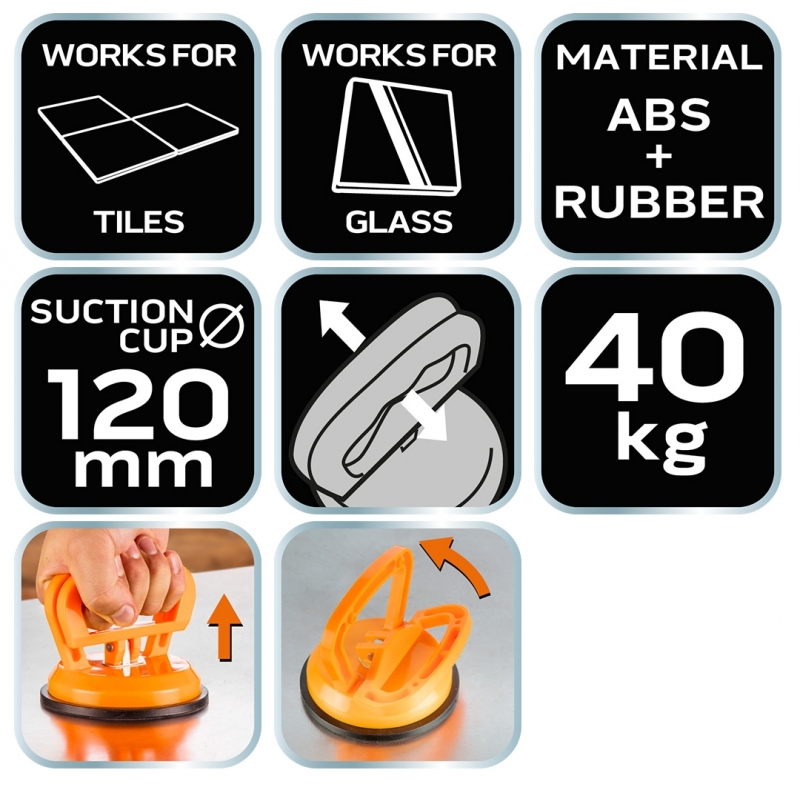Przyssawka do szyb pojedyncza, 40 kg, plastikowe zatrzaski