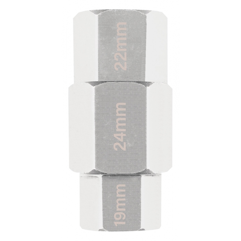 Narzędzie do osi motocyklowych 3 w 1, 3 różne rozmiary sześciokątów wewnętrznych: 19, 22, 24 mm, zapobiega obracaniu się osi podczas dokręcania lub luzowania nakrętki koła,