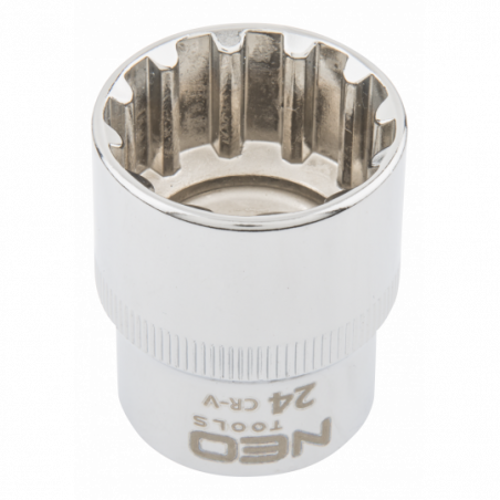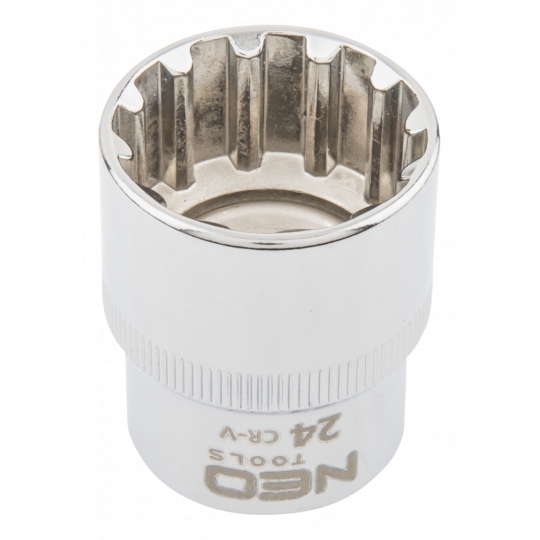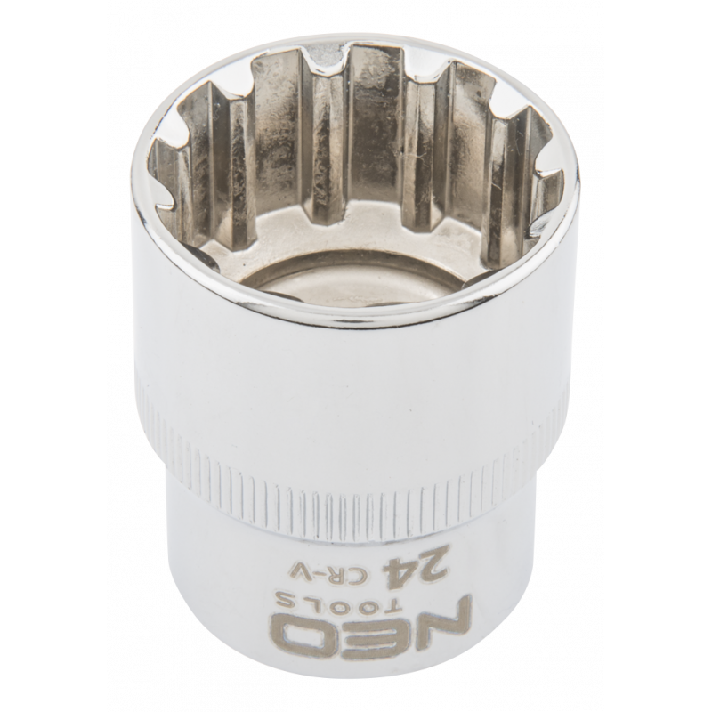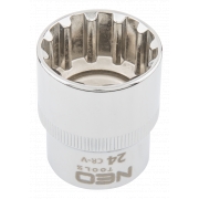 Nasadka Spline 1/2", 24 mm, sferyczny kształt pasujący do śrub sześciokątnych metrycznych i calowych, dwunastokątnych, kwadratowych, Torx, Spline, stal CrV, DIN3124, certyfikat TÜV M+T, 25 lat gwarancji