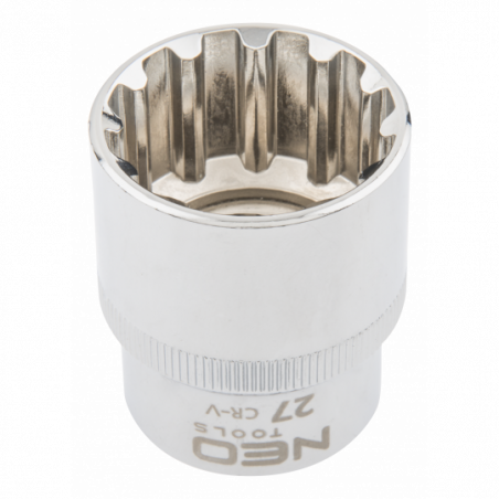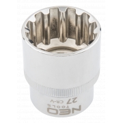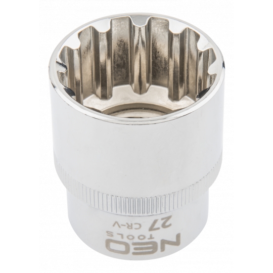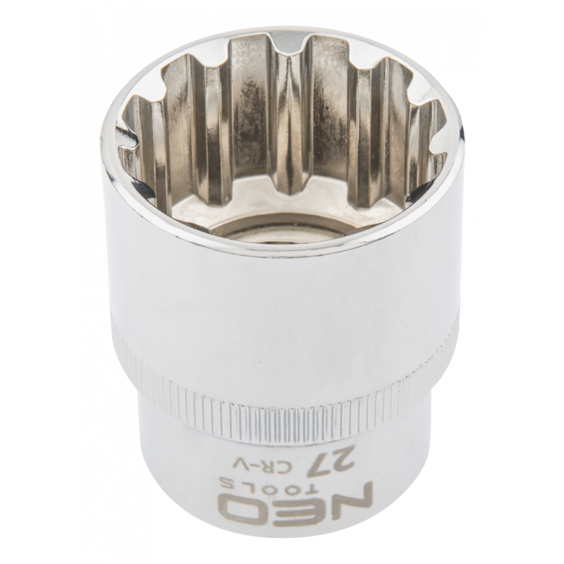 Nasadka Spline 1/2", 27 mm, sferyczny kształt pasujący do śrub sześciokątnych metrycznych i calowych, dwunastokątnych, kwadratowych, Torx, Spline, stal CrV, DIN3124, certyfikat TÜV M+T, 25 lat gwarancji