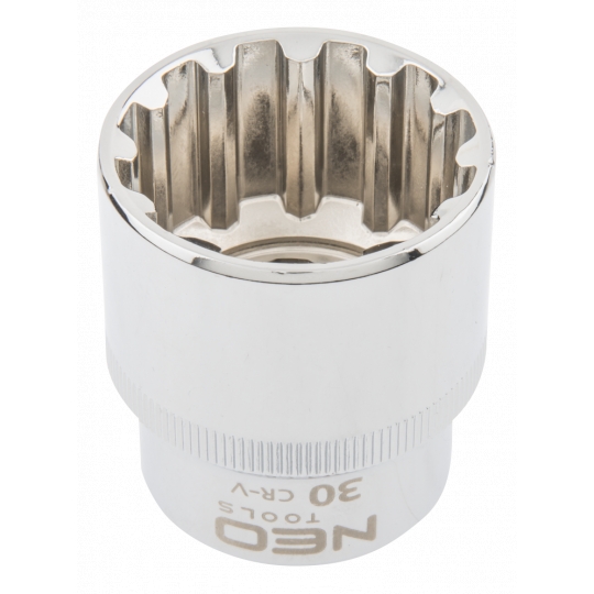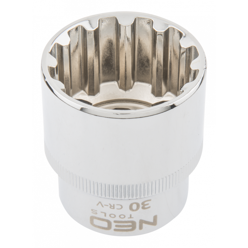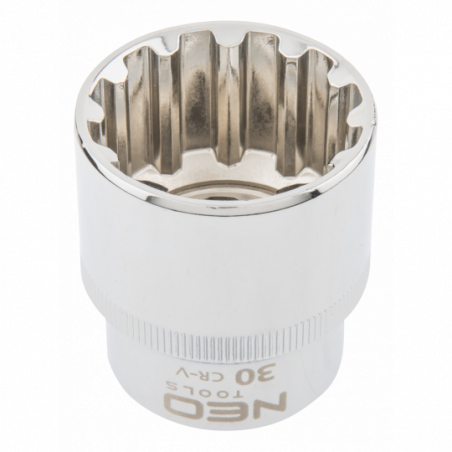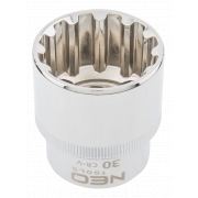 Nasadka Spline 1/2", 30 mm, sferyczny kształt pasujący do śrub sześciokątnych metrycznych i calowych, dwunastokątnych, kwadratowych, Torx, Spline, stal CrV, DIN3124, certyfikat TÜV M+T, 25 lat gwarancji