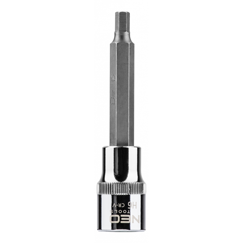 Końcówka sześciokątna na nasadce 1/2", H6 x 100 mm, nasadka ze stali CrV, końcówka ze stali S2, certyfikat TÜV M+T, 25 lat gwarancji