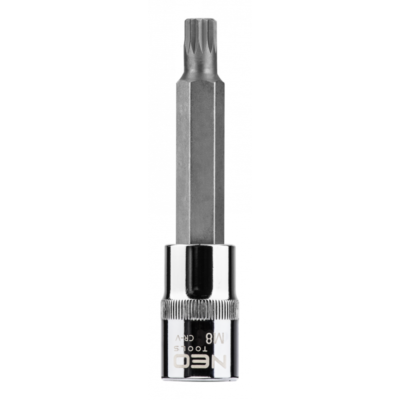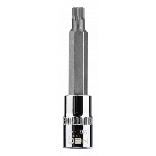 Końcówka Spline na nasadce 1/2", M8 x 100 mm, nasadka ze stali CrV, końcówka ze stali S2