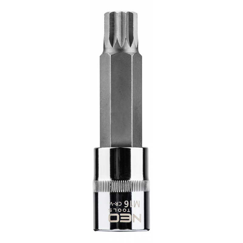 Końcówka Spline na nasadce 1/2", M16 x 100 mm, nasadka ze stali CrV, końcówka ze stali S2