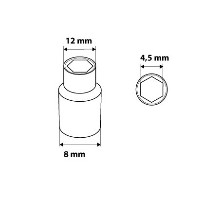 Nasadka sześciokątna 1/4”, 4.5 mm, stal CrV, 25 lat gwarancji.