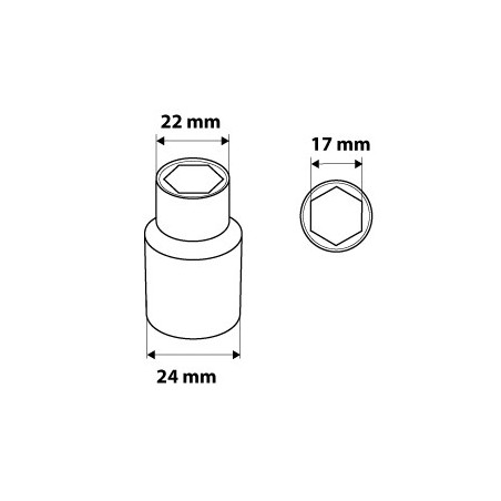 Nasadka sześciokątna 1/2”, 17 mm, stal CrV, 25 lat gwarancji.