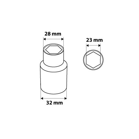 Nasadka sześciokątna 1/2”, 23 mm, stal CrV, 25 lat gwarancji.