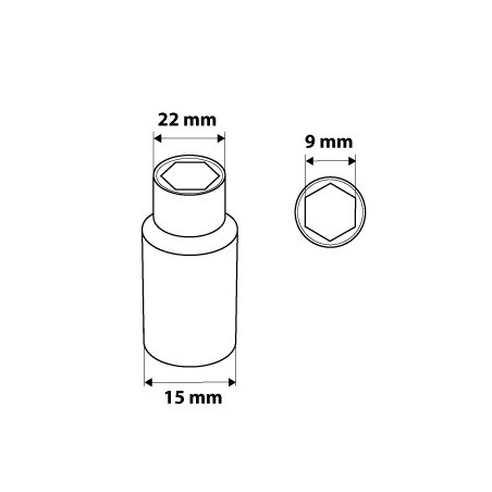 Nasadka sześciokątna długa 1/2", 9 mm, stal CrV, 25 lat gwarancji