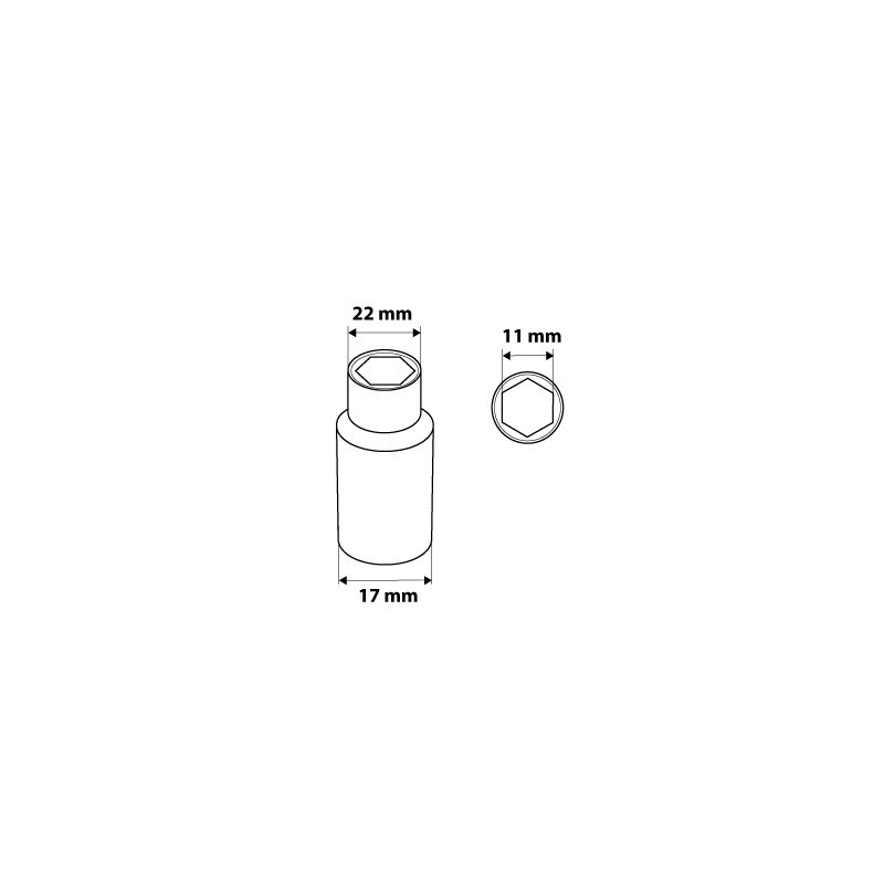 Nasadka sześciokątna długa 1/2", 11 mm, stal CrV, 25 lat gwarancji