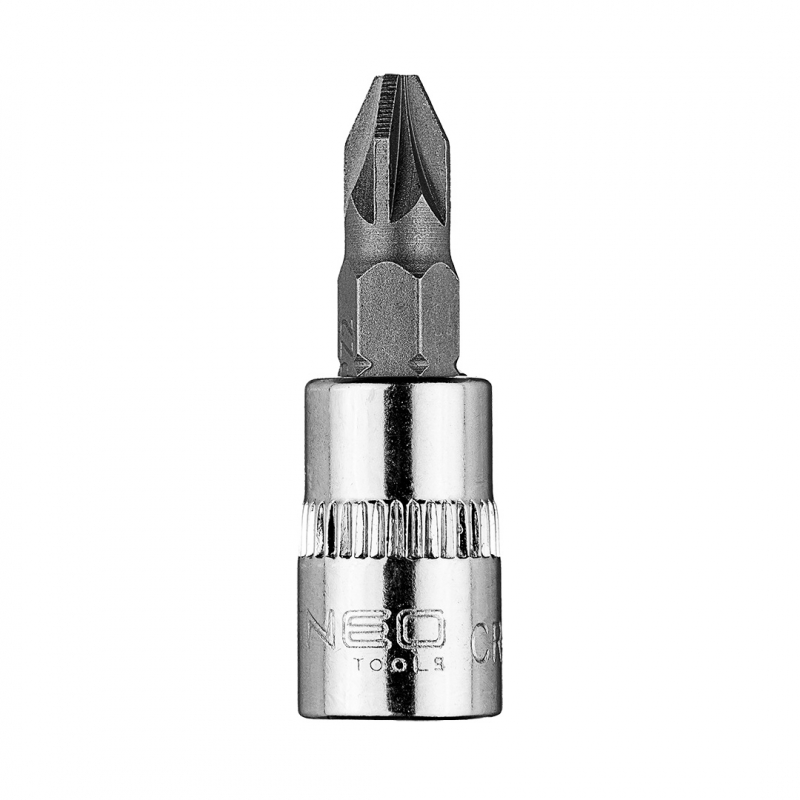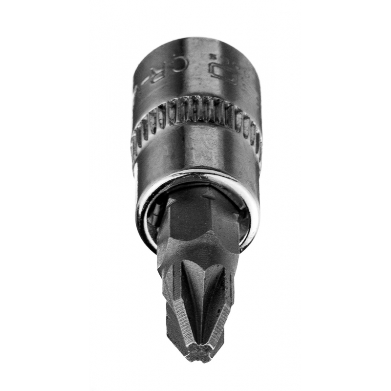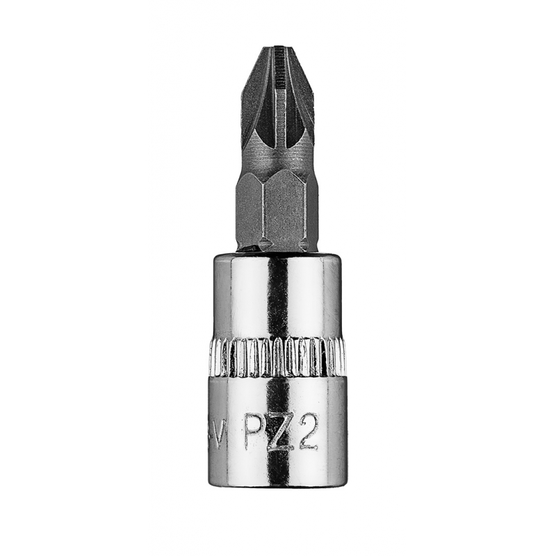 Końcówka wkrętakowa PZ2 na nasadce 1/4", krótka, 37 mm, stal CrV