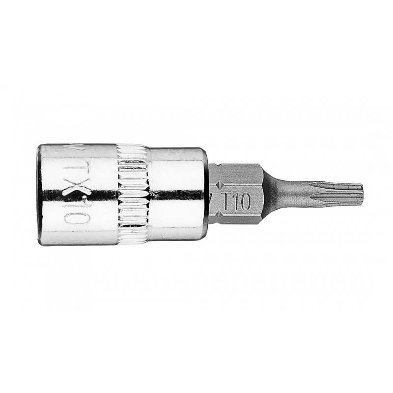 Końcówka TORX TX10 na nasadce 1/4", krótka, 37 mm, stal CrV