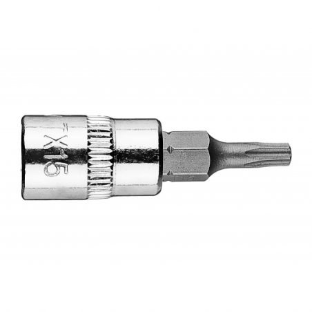 Końcówka TORX TX15 na nasadce 1/4", krótka, 37 mm, stal CrV