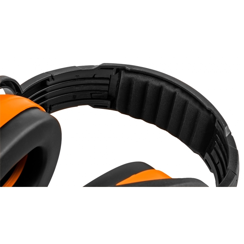 Nauszniki przeciwhałasowe, SNR 32dB, kategoria III, regulowany, amortyzowany pałąk pozwalający dostosować rozmiar nauszników,miękkie, szerokie poduszki pomagają ograniczyć ucisk wokół uszu, poprawiając wygodę i ergonomię noszenia, niewielki nacisk, zapewnia maksymalną wygodę nawet w czasie długotrwałego użytkowania, CE