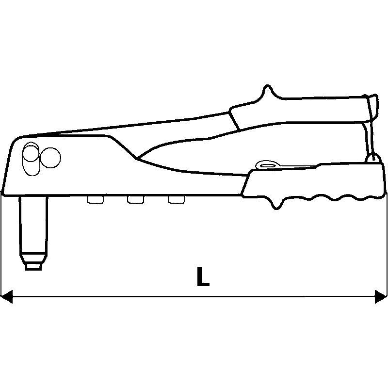 Nitownica do nitów aluminiowych 2.4, 3.2, 4.0, 4.8 mm, 4 końcówki, długość 260 mm, stalowa dźwignia, aluminiowy korpus, klucz płaski