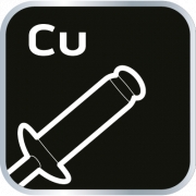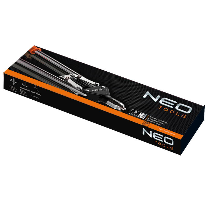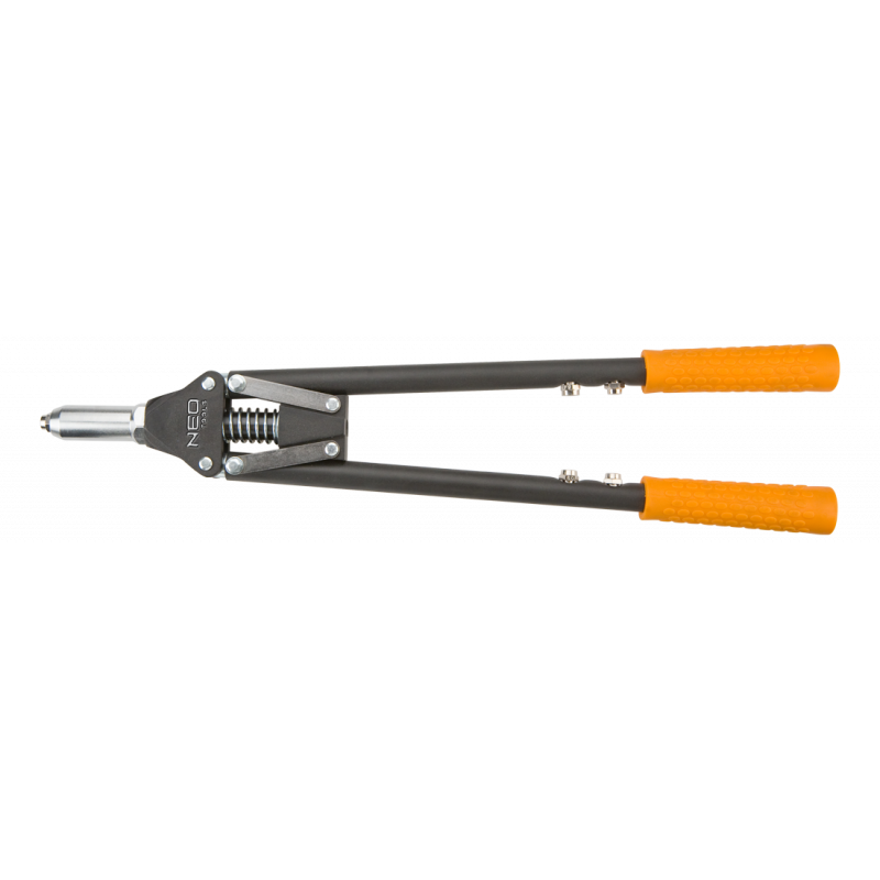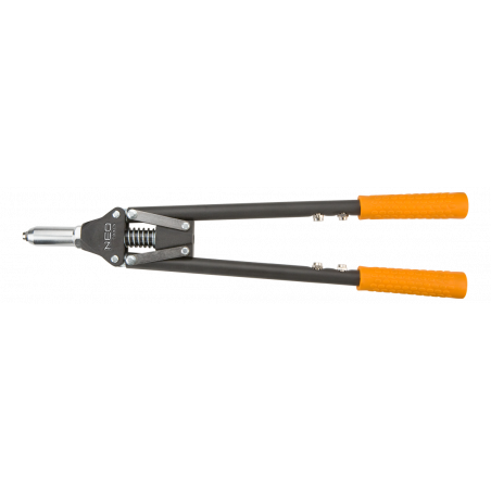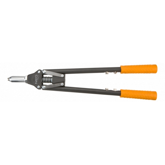 Nitownica czołowa do nitów stalowych i aluminiowych 3.2, 4.0, 4.8, 6.0, 6.4 mm, 4 końcówki, 2 szczękowy uchwyt, wydłużone ramiona, mechanizm szybkiej wymiany szczęk, O3.2 mm: aluminium, stal, miedź, stal nierdzewna, O4.0 mm: aluminium, stal, miedź, stal nierdzewna, O4.8 mm: aluminium, stal, miedź, O6.0 mm: aluminium, stal, miedź, stal nierdzewna, O6.4 mm: aluminium, stal, miedź, stal nierdzewna