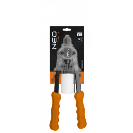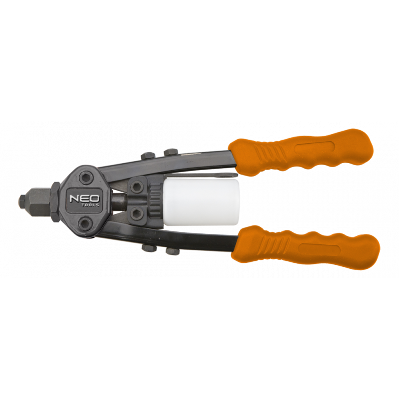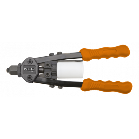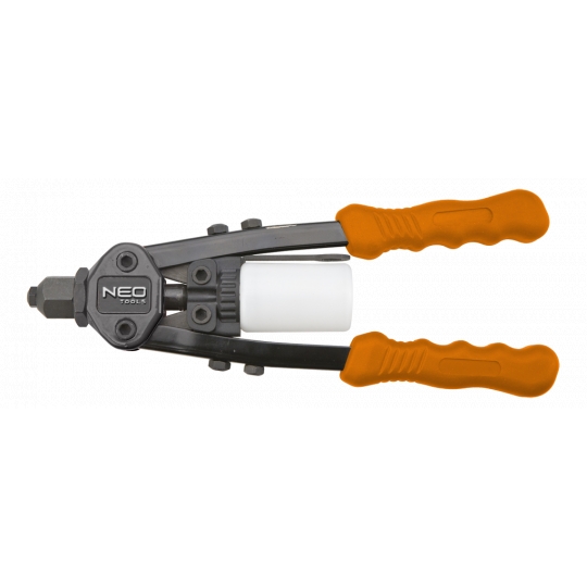 Nitownica czołowa do nitów stalowych i aluminiowych 2.4, 3.2, 4.0, 4.8 mm, 4 końcówki, 3 szczękowy uchwyt, mechanizm szybkiej wymiany szczęk, O2.4 mm: aluminium, stal, miedź, stal nierdzewna, O3.2 mm: aluminium, stal, miedź, stal nierdzewna, O4.0 mm: aluminium, stal, miedź, stal nierdzewna, O4.8 mm: aluminium, stal, miedź
