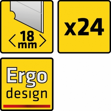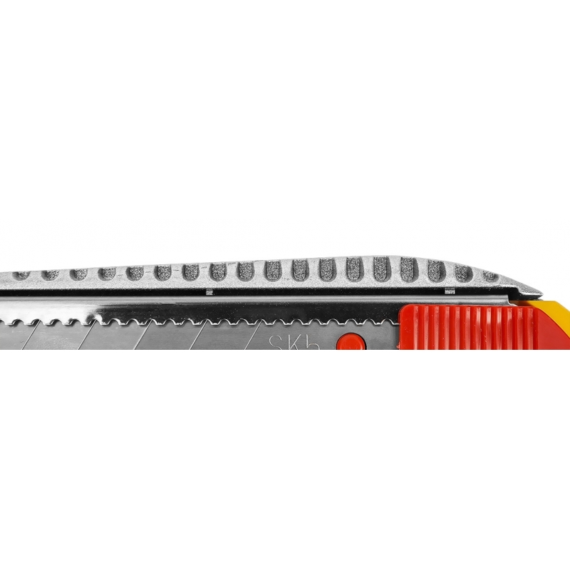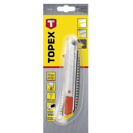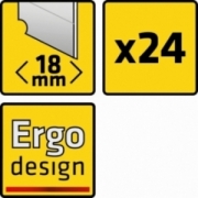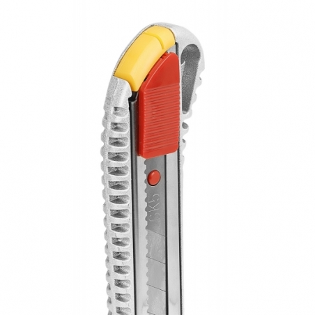 Nóż z ostrzem łamanym 18 mm, display po 24 sztuki, metalowe prowadnice ostrza, metalowy korpus