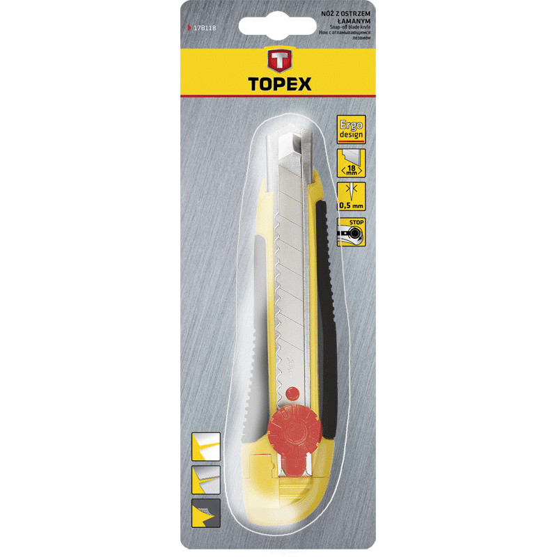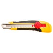 Nóż z ostrzem łamanym 18 mm, blokada śrubowa, metalowe prowadnice ostrza, korpus z tworzywa z okładziną antypoślizgową