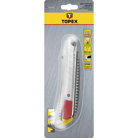 Nóż z ostrzem łamanym 18 mm, metalowe prowadnice ostrza, metalowy korpus