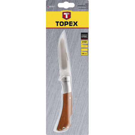 Nóż uniwersalny, ostrze 80 mm, składany, nierdzewne ostrze i korpus, blokada ostrza, drewniane okładki