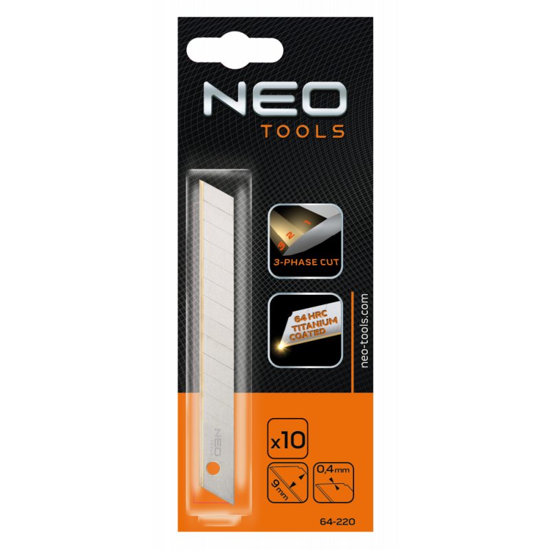 Ostrza łamane wymienne 9 mm, 10 szt., grubość 0.4 mm, krawędź tnąca pokryta tytanem