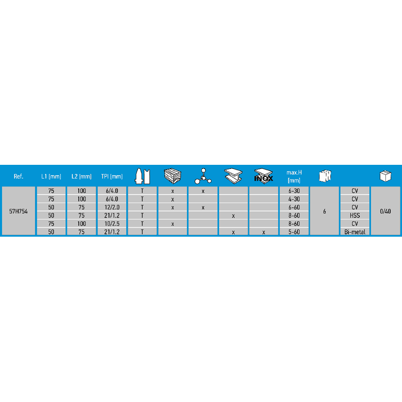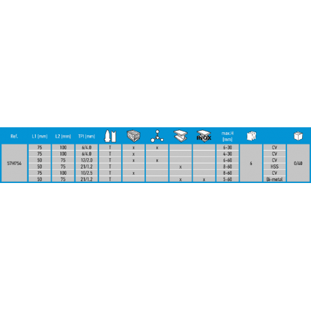 Brzeszczoty do wyrzynarki, uchwyt typu T, zestaw 6 szt., do cięcia drewna, metalu, tworzyw po linii prostej i po łuku.