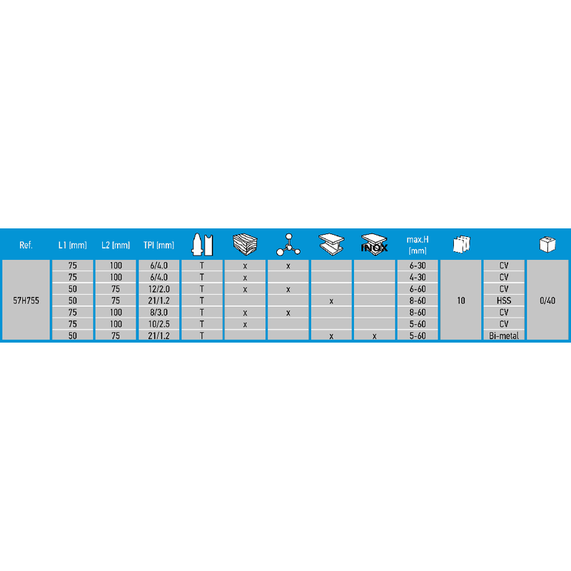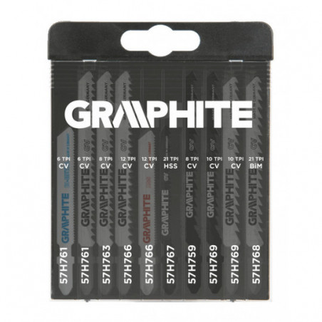 Brzeszczoty do wyrzynarki, uchwyt typu T, zestaw 10 szt., do cięcia drewna, metalu, tworzyw po linii prostej i po łuku.