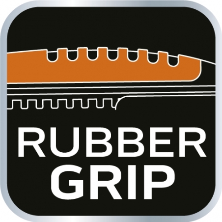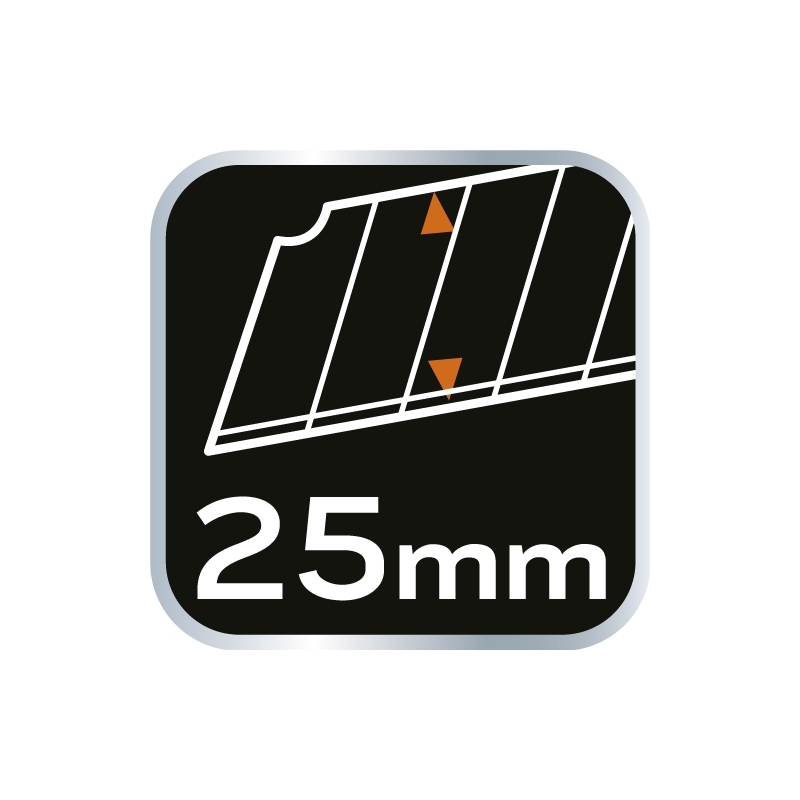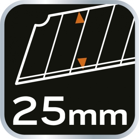 Nóż z ostrzem łamanym 25 mm, korpus ABS, metalowe prowadnice ostrza 1.2mm, gumowany uchwyt, ostrze SK4 czernione, blokada ostrza.