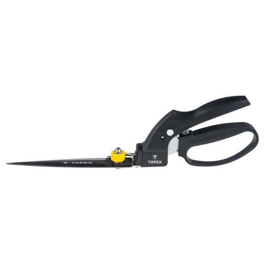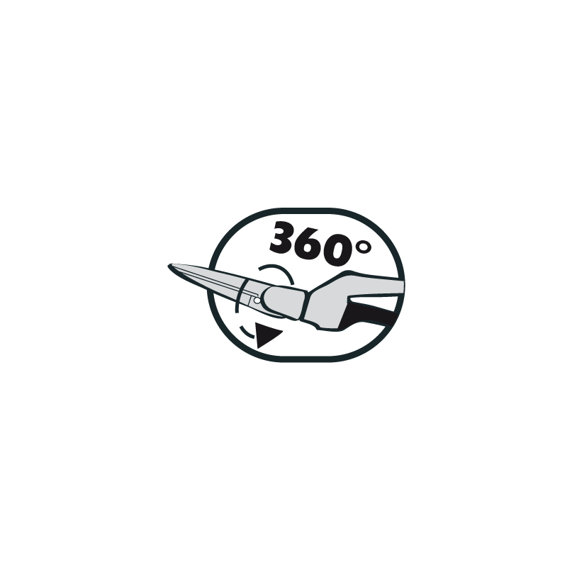 Nożyce do trawy wielopozycyjne 340 mm, ostrze 130 mm, ostrze pokryte PTFE, możliwość obrotu w zakresie 360 stopni, ergonomiczne uchwyty, osłona na palce